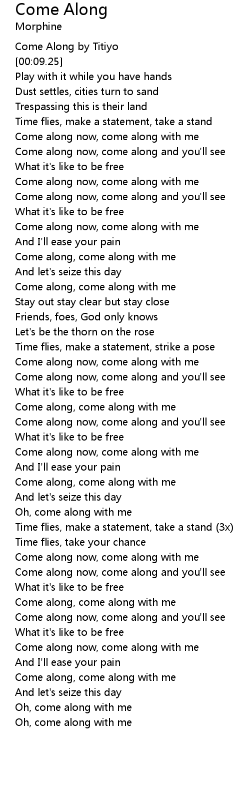 Come along now, come along with me |