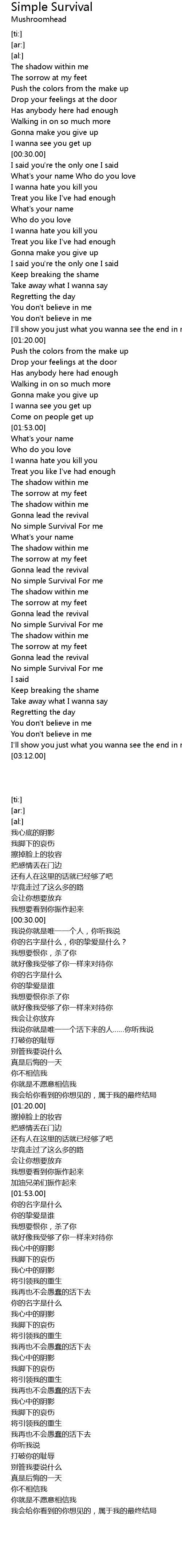 No simple Survival For me |