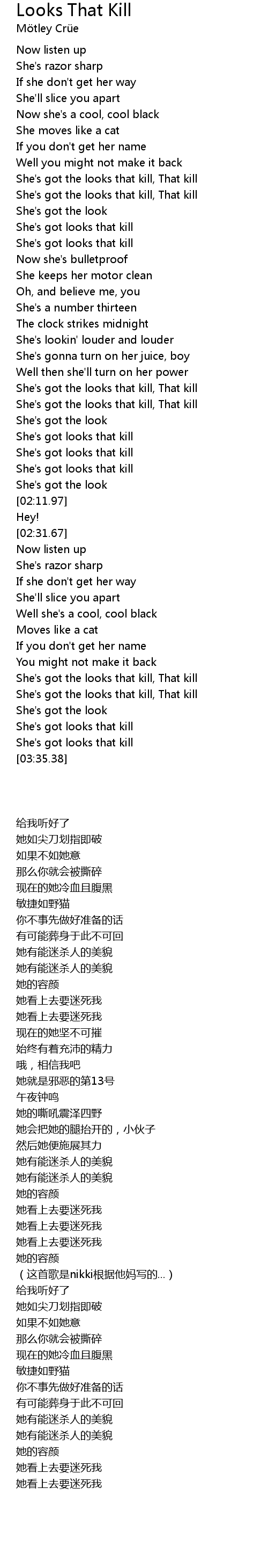She's got looks that kill |