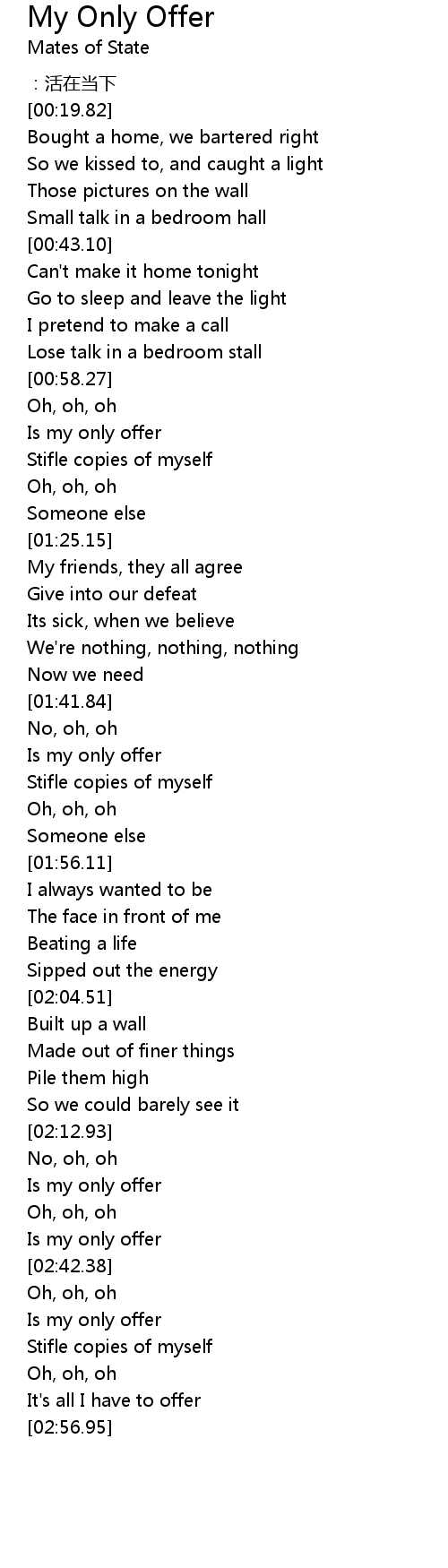 | [02:16.84] | Is my only offer |
