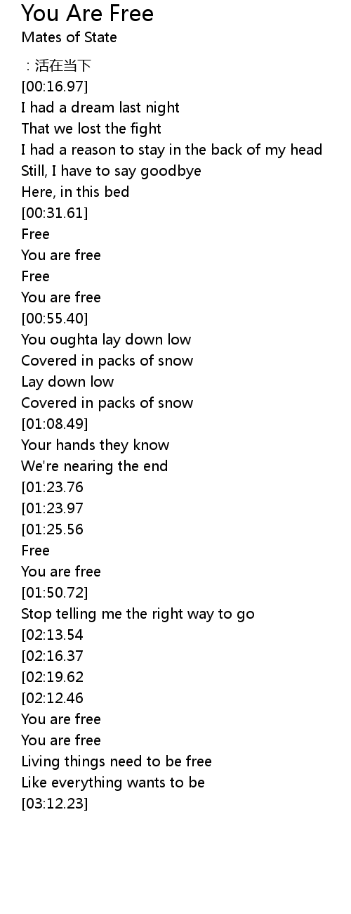 | [00:33.44] | You are free |