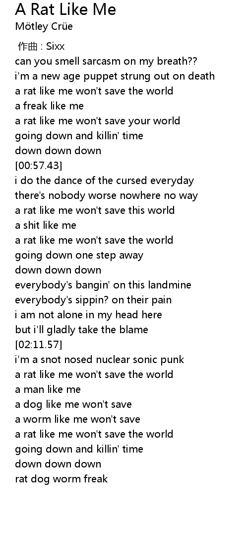 | [00:34.90] | a rat like me won't save your world |