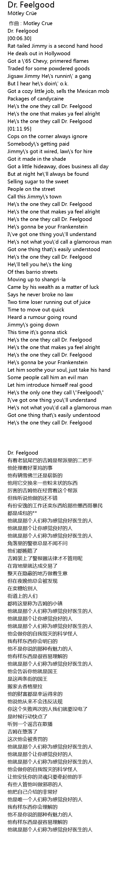 | [00:02.70] | Dr. Feelgood |