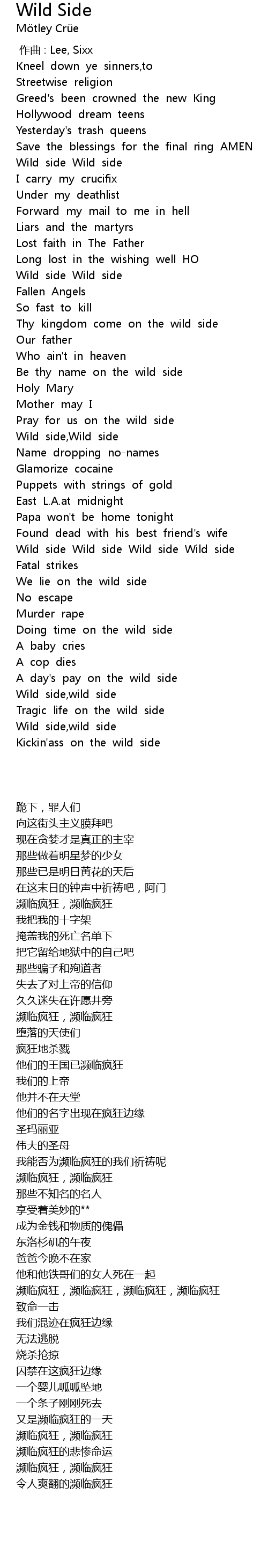 | [02:48.726] | Wild side Wild side Wild side Wild side |