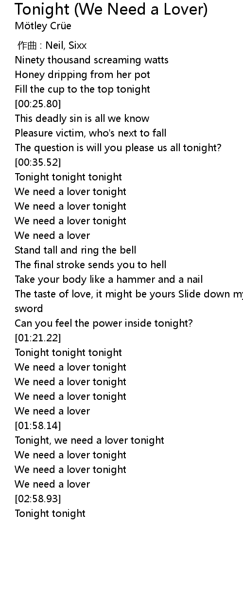 | [01:29.62] | We need a lover tonight |