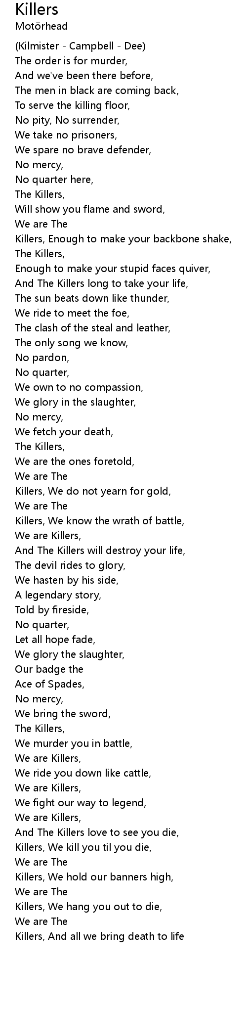 | Killers, We kill you til you die, | |