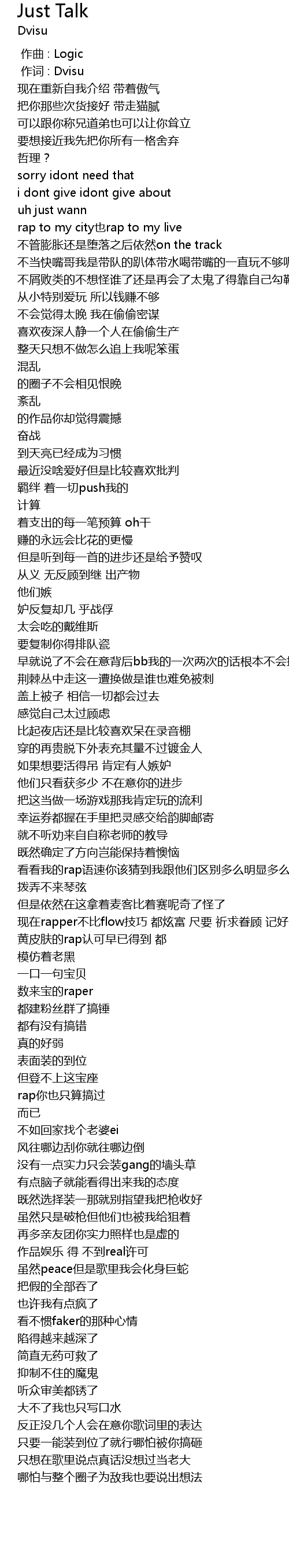 | [02:03.433]看看我的rap语速你该猜到我跟他们区别多么明显多么惊艳 拨弄不来琴弦 [02:05.433] | 但是依然在这拿着麦客比着赛呢奇了怪了 |