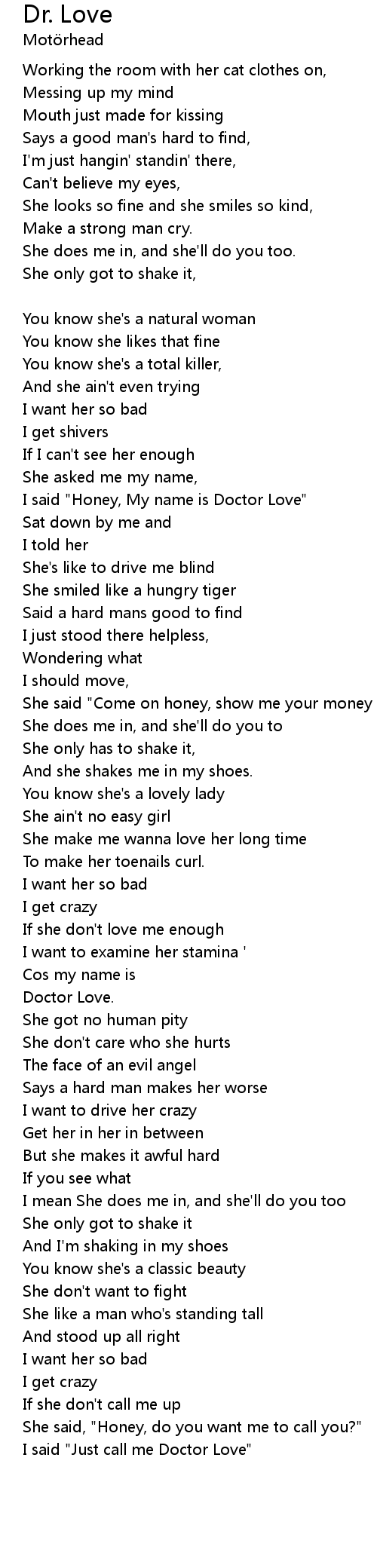 | I said "Honey, My name is Doctor Love" | |