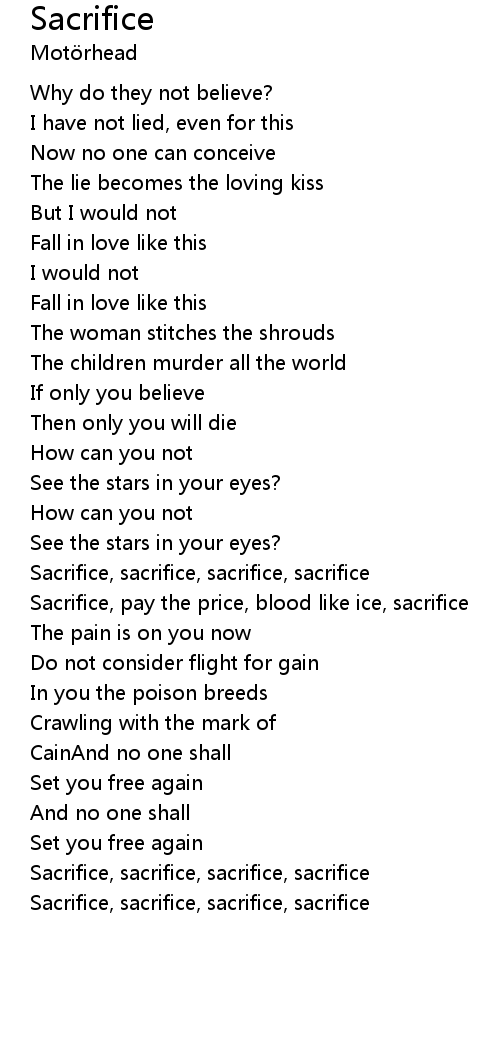 | Sacrifice, pay the price, blood like ice, sacrifice | |