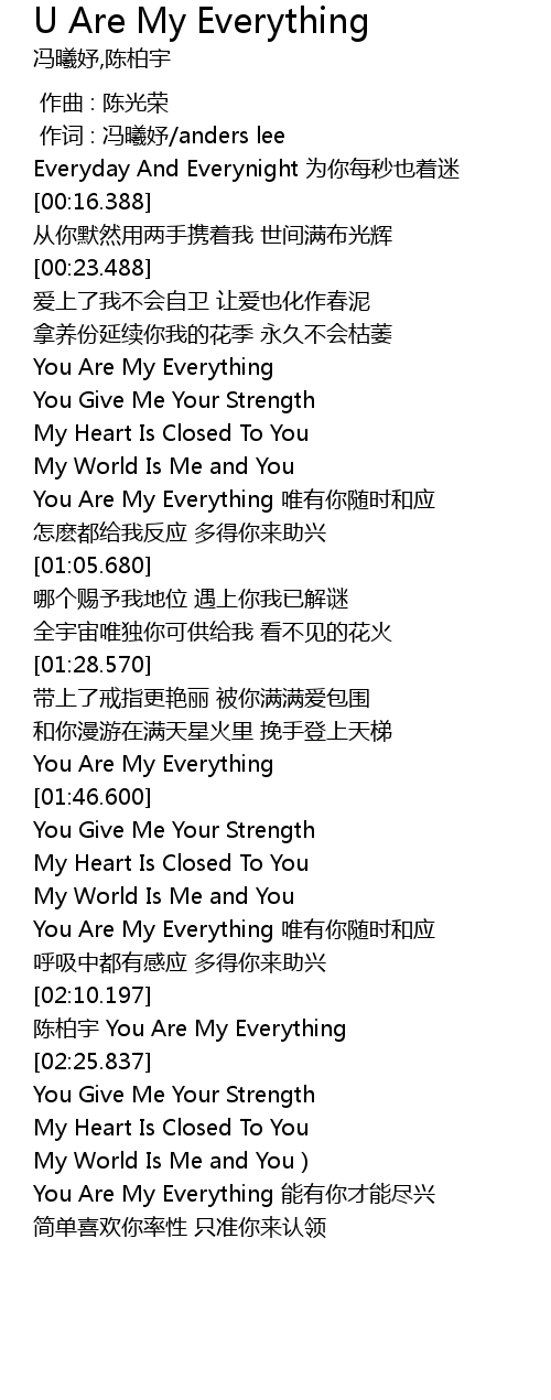 | [02:23.197] | 陈柏宇 You Are My Everything |
