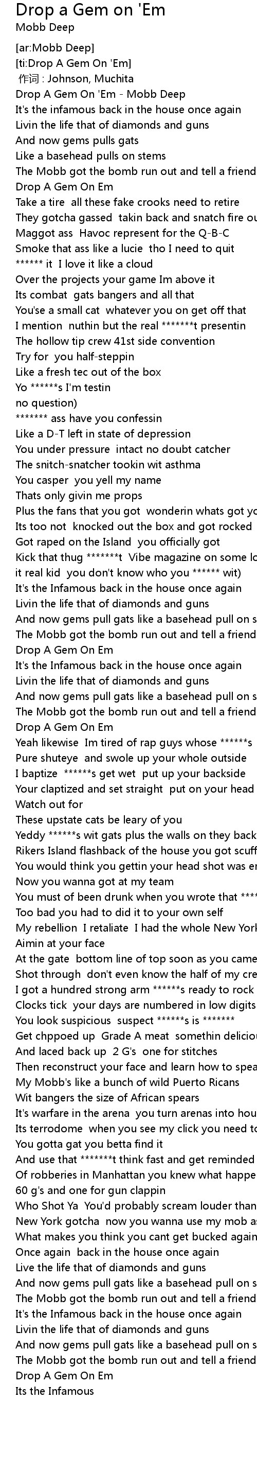 | [00:00.65] | Drop A Gem On 'Em - Mobb Deep |