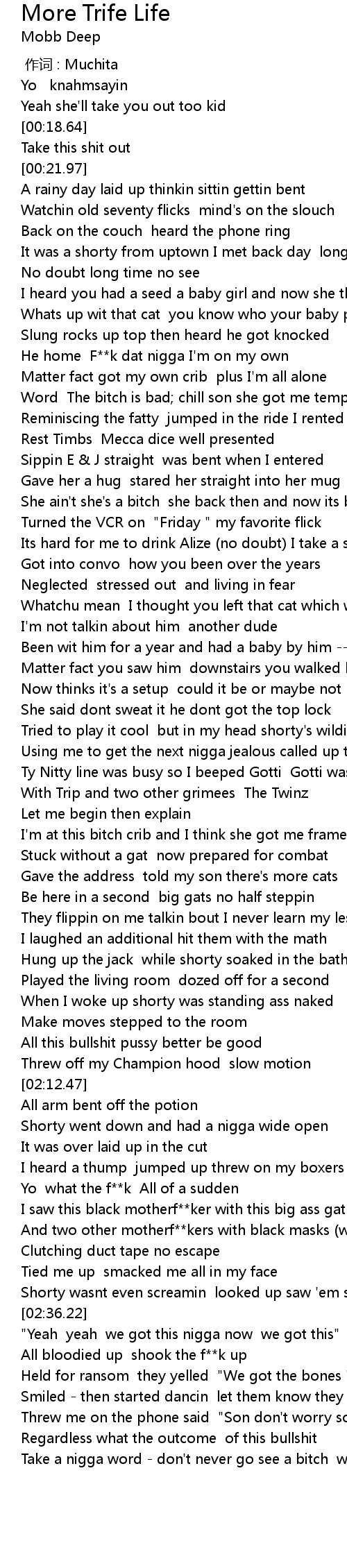 | [02:52.28] | Take a nigga word - don't never go see a bitch word |