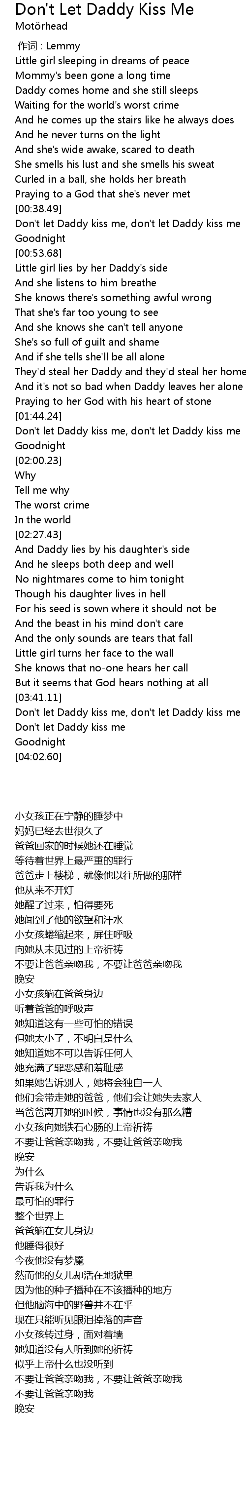 | [00:42.63] | Don' t let Daddy kiss me, don' t let Daddy kiss me |