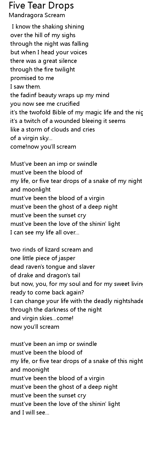 my life, or five tear drops of a snake of this night |
