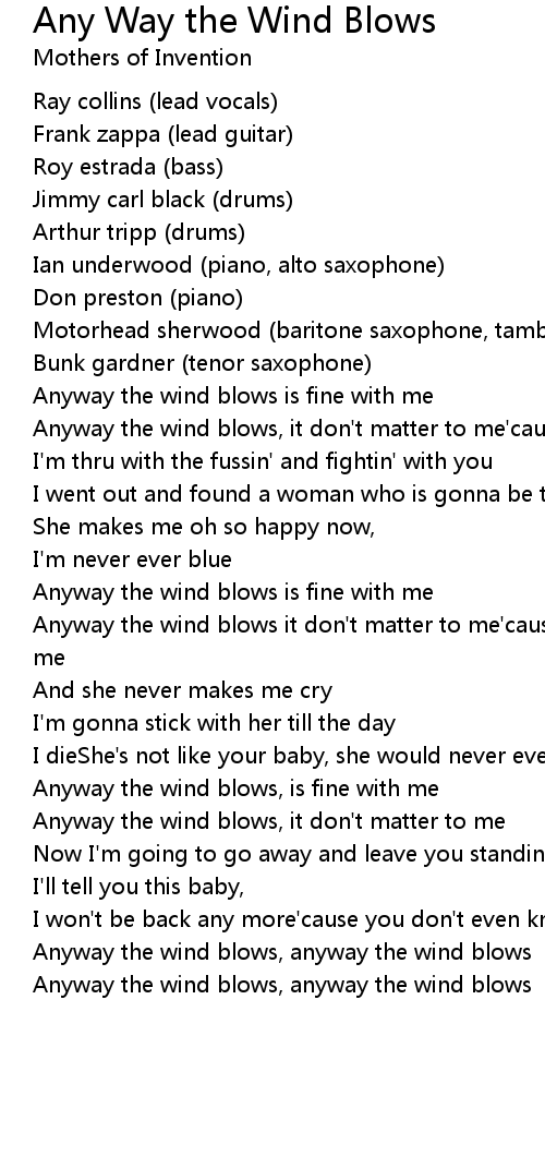 Anyway the wind blows it don't matter to me'cause she treats me like she loves me |