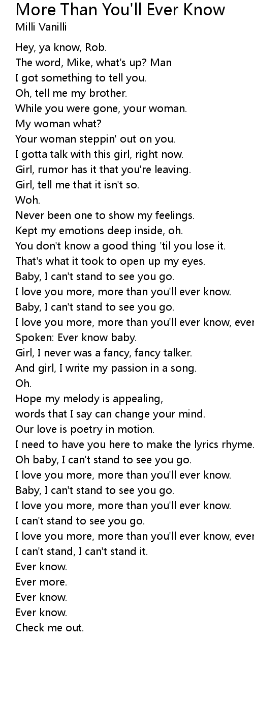 I love you more, more than you'll ever know, ever know. |