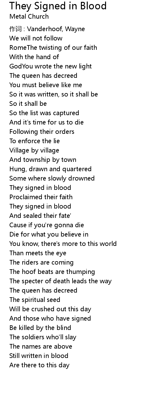 | Song | They Signed in Blood |
