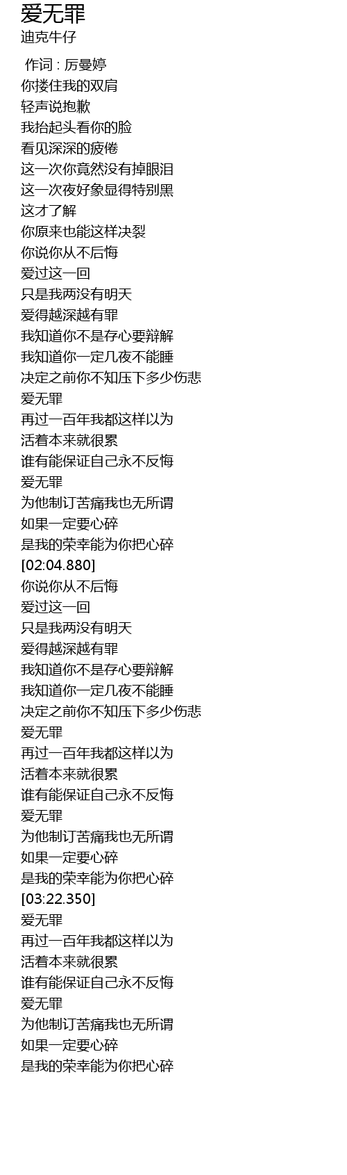 | [03:49.750] | 爱无罪 |