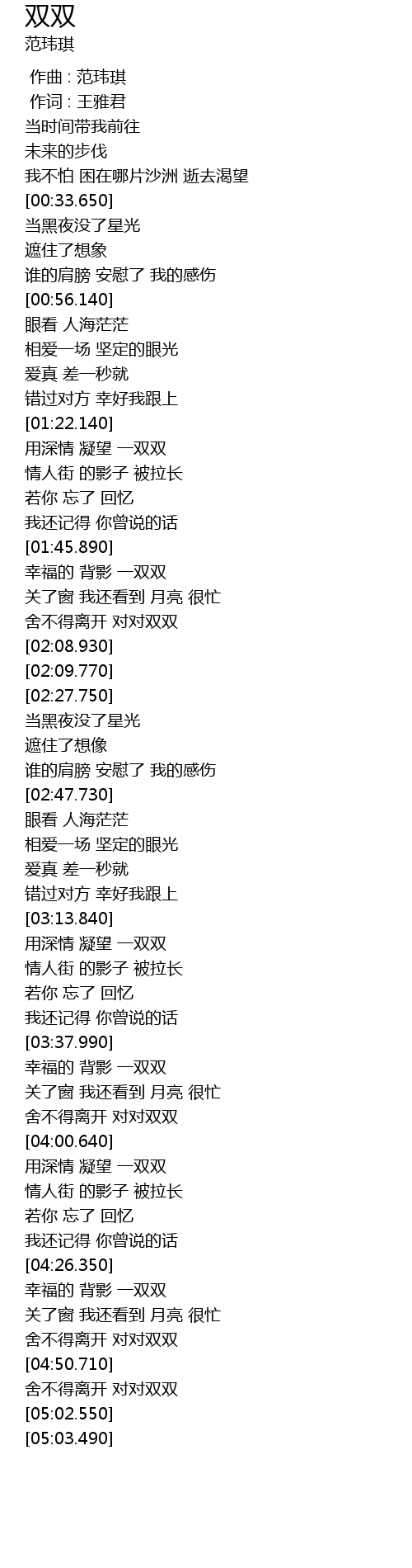 | [04:53.610] | she bu de li kai dui dui shuang shuang |