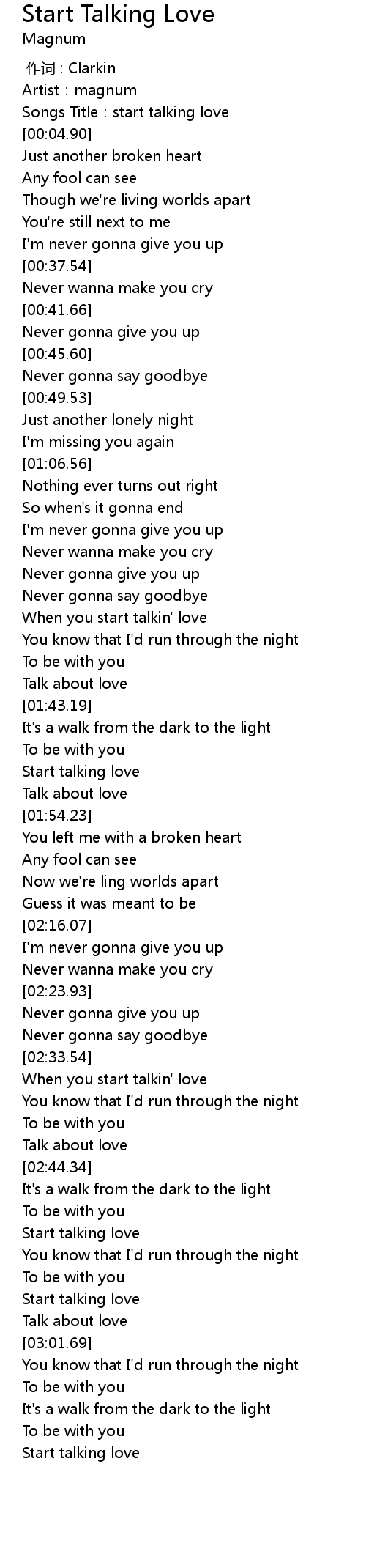 | [02:58.63] | Start talking love |