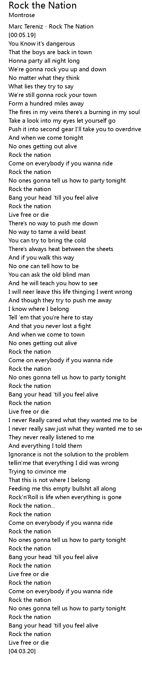 | [03:23.17] | Rock the nation |