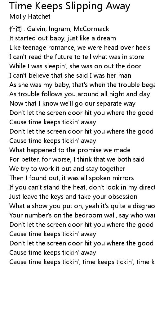 | Song | Time Keeps Slipping Away |
