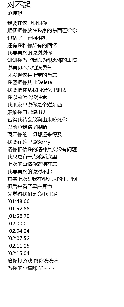 | [01:32.53] | wǒ yào zài cì de shuō duì bù qǐ |