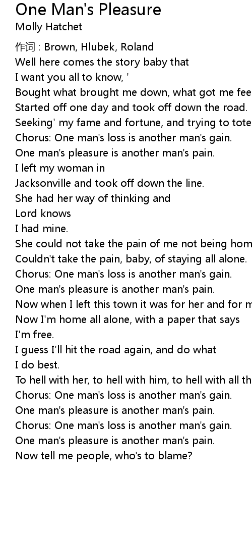 | Chorus: One man's loss is another man's gain. | |