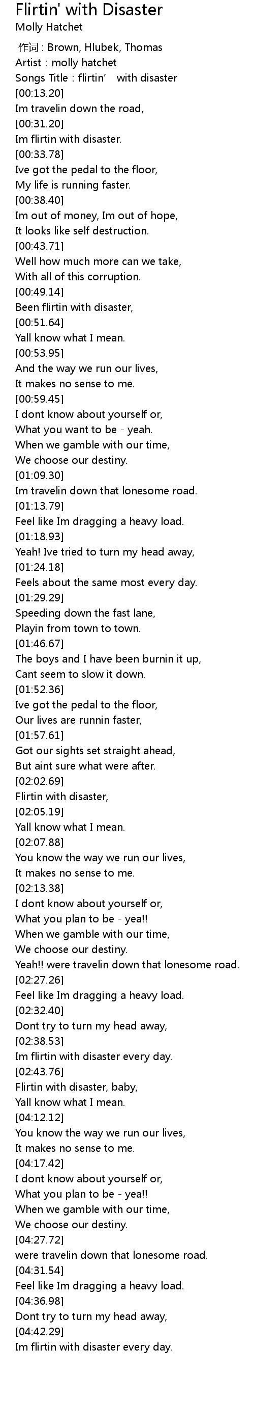 | [00:06.44] | Songs Title:flirtin’ with disaster |