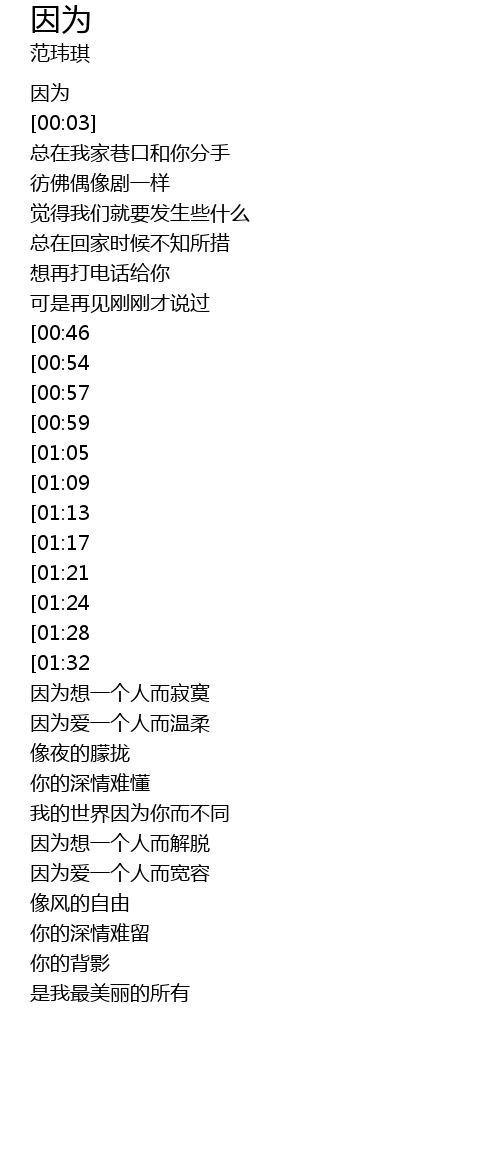 | [02:40][01:17] | 因为等一个人而折磨 |