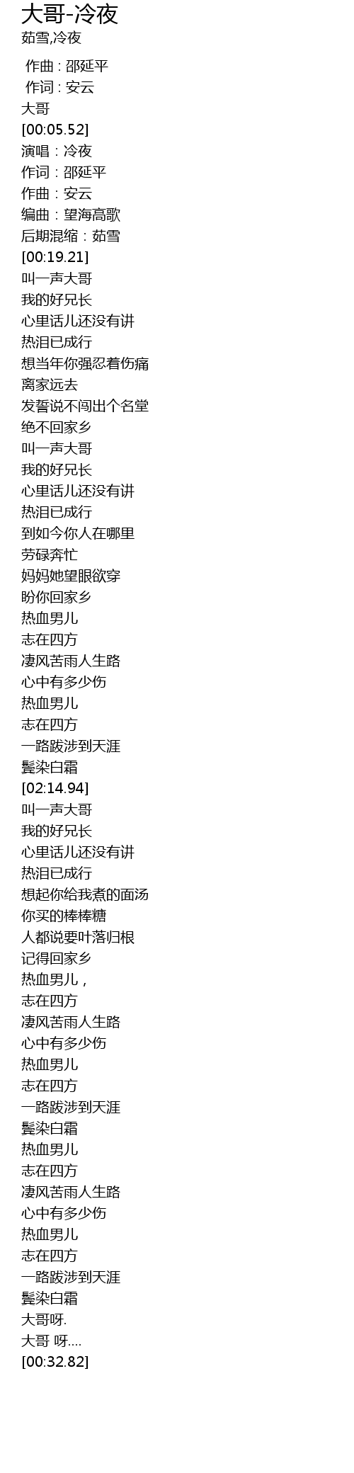 | [00:35.29] | 叫一声大哥 |