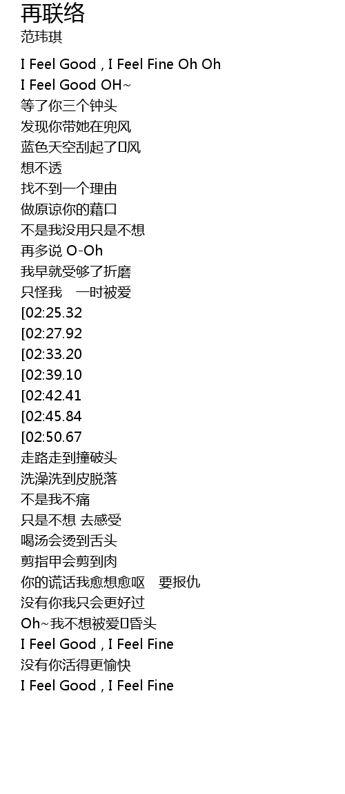 | [02:58.45] | I Feel Good , I Feel Fine |