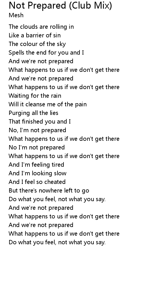 Not Prepared (Club Mix) Lyrics