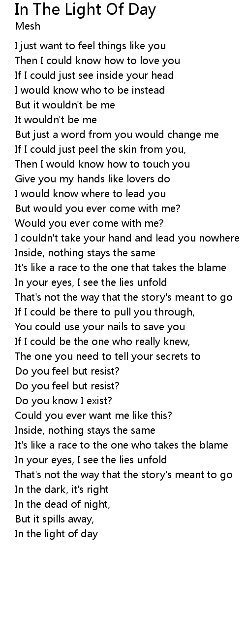 In the light of day |