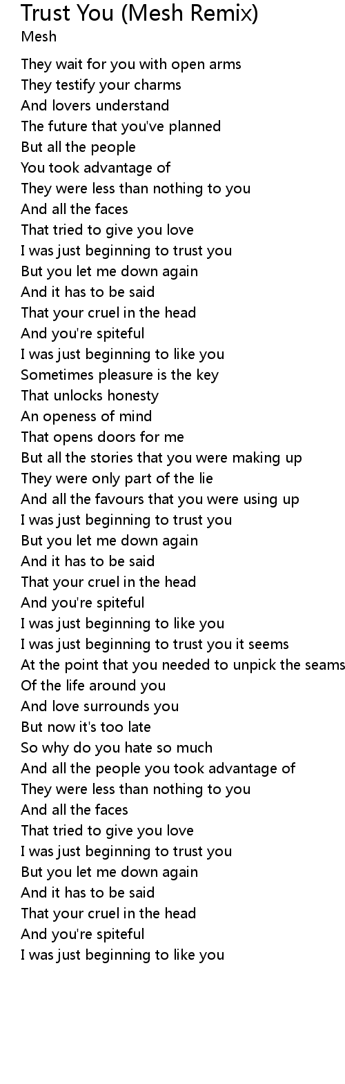 I was just beginning to trust you it seems |
