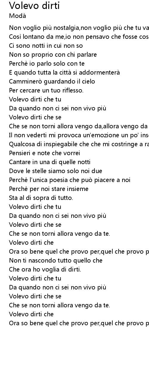 | Non voglio piu nostalgia, non voglio piu che tu vada via | |