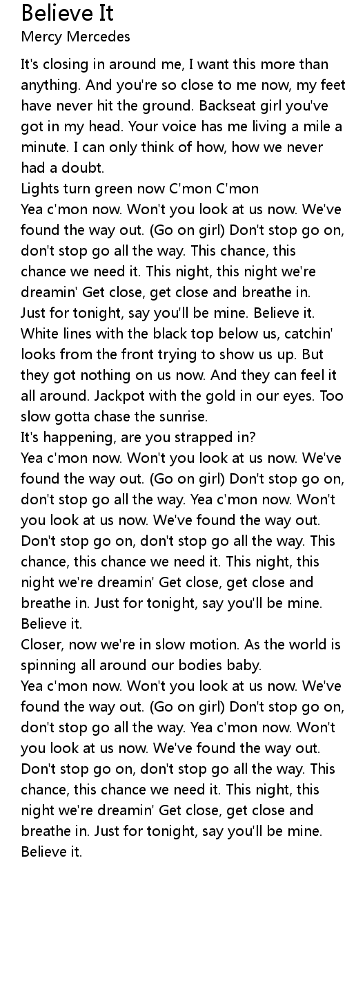 Just for tonight, say you'll be mine. Believe it. |