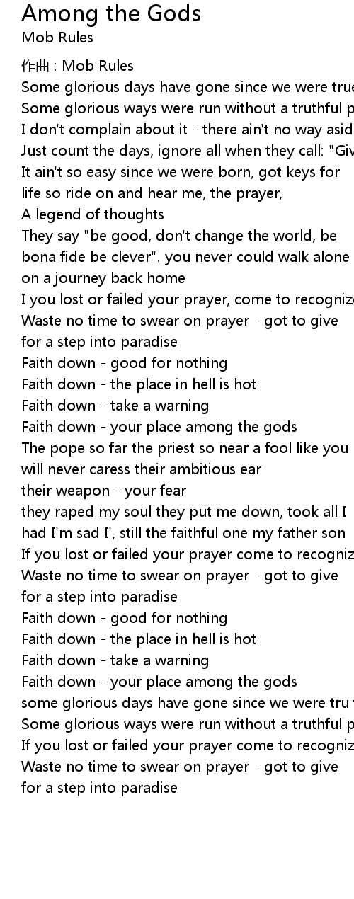 | Faith down your place among the gods | |