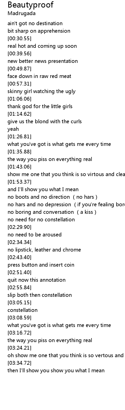 | Song | Beautyproof |