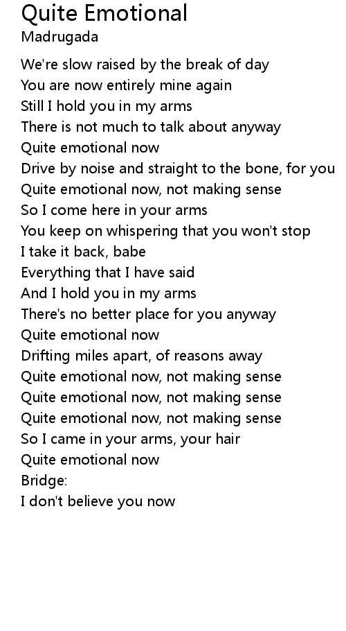 Quite emotional now, not making sense |