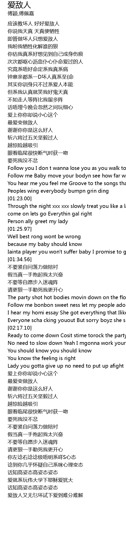 | [03:23.89] | 爱敌人又无乜坏试下爱到难分难解 |