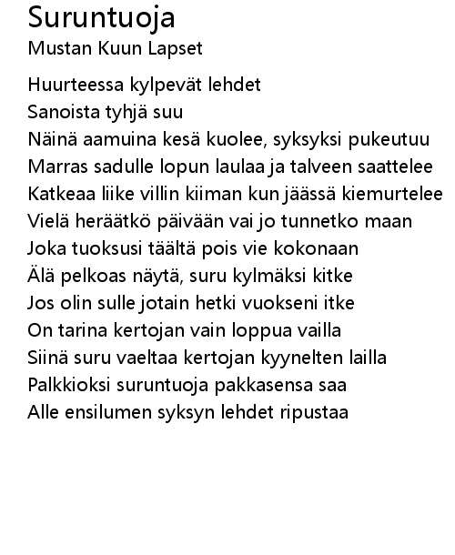 | Siin suru vaeltaa kertojan kyynelten lailla | |