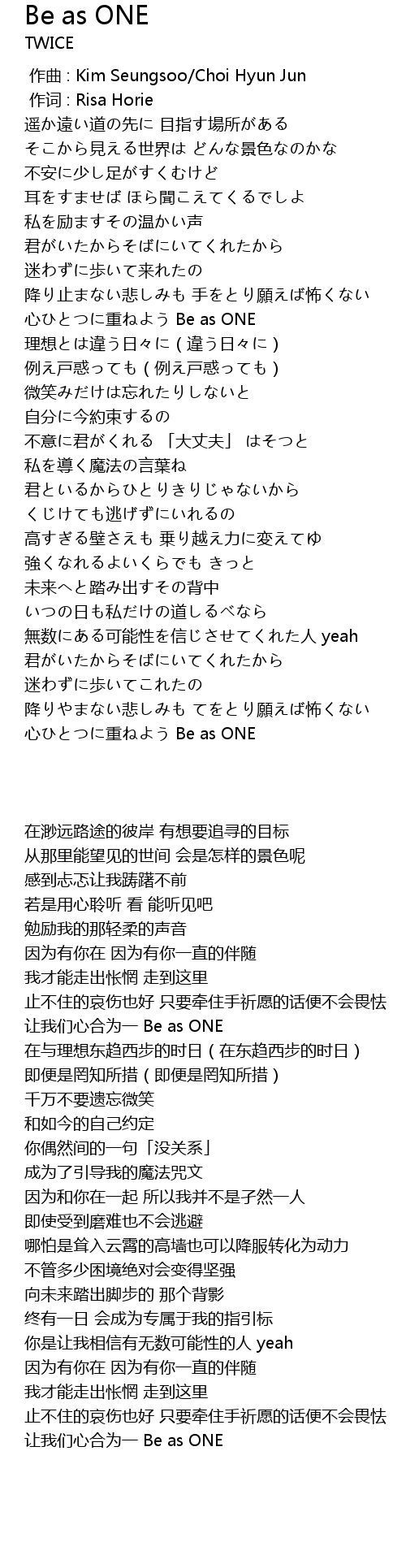 | [01:16.33] | 心ひとつに重ねよう Be as ONE |