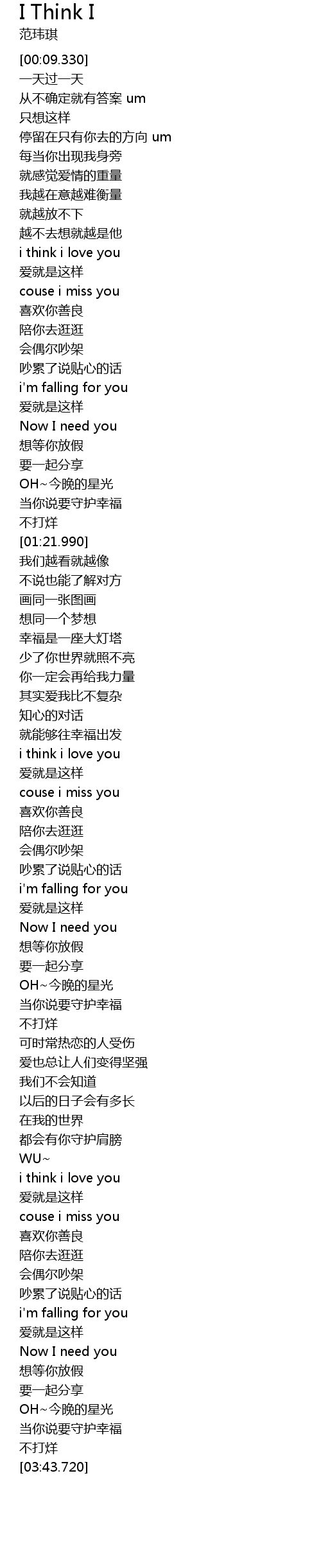 | [03:05.150] | i think i love you |