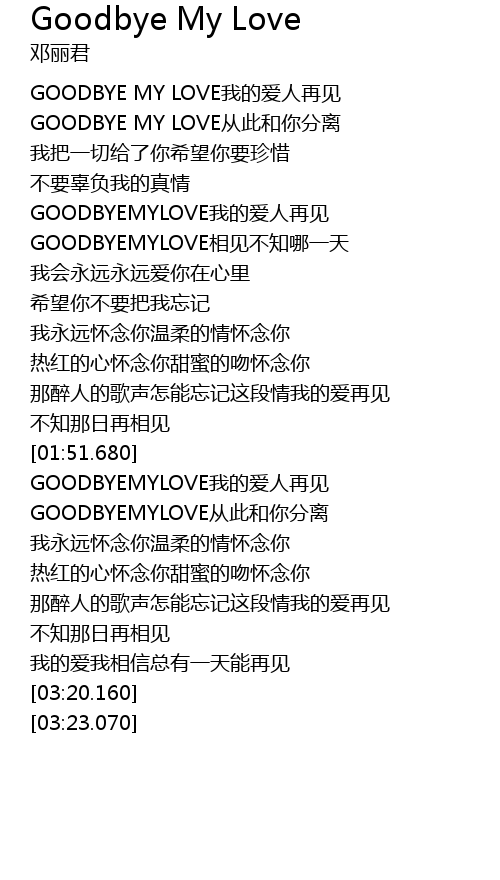 | [00:34.750] | GOODBYE MY LOVE我的爱人再见 |