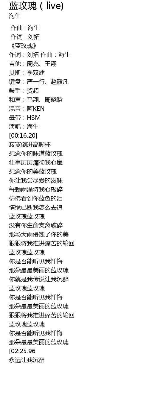| [01:55.46] | 蓝玫瑰蓝玫瑰 |