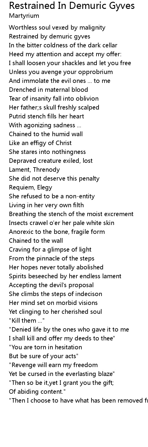 Restrained by demuric gyves |