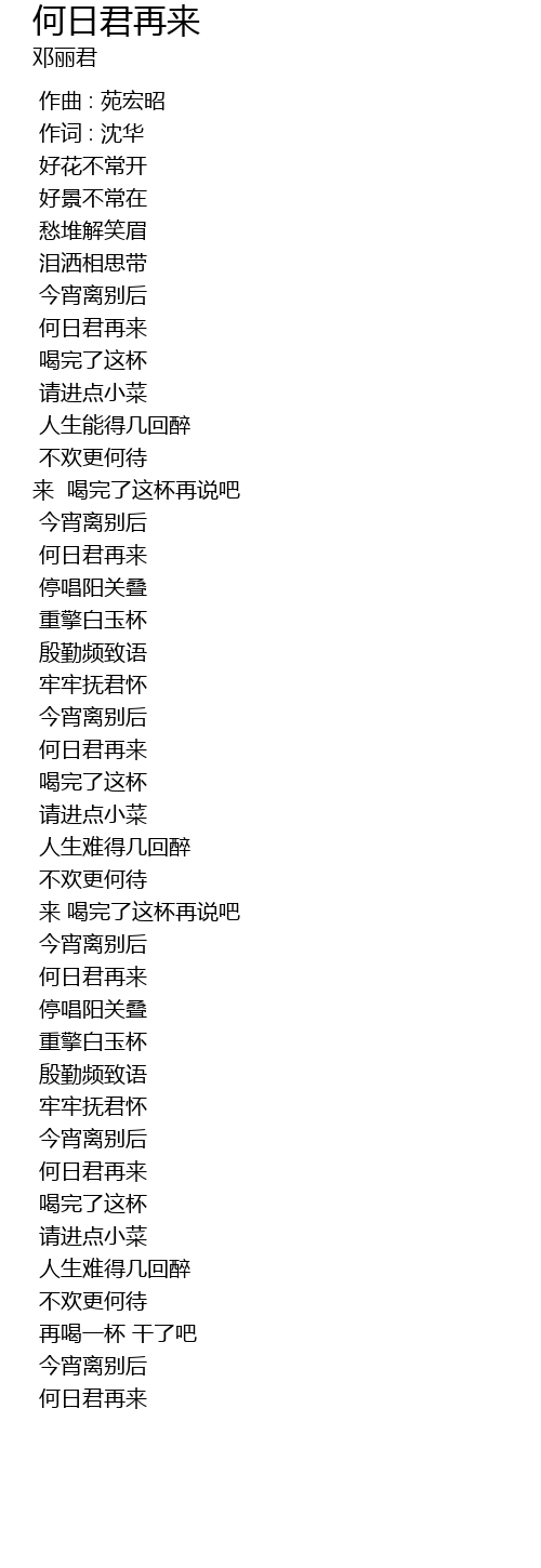 | [03:12.000] | 何日君再来 |
