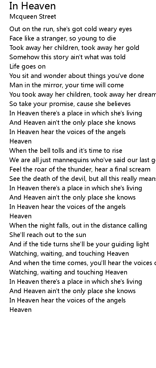 In Heaven there's a place in which she's living |
