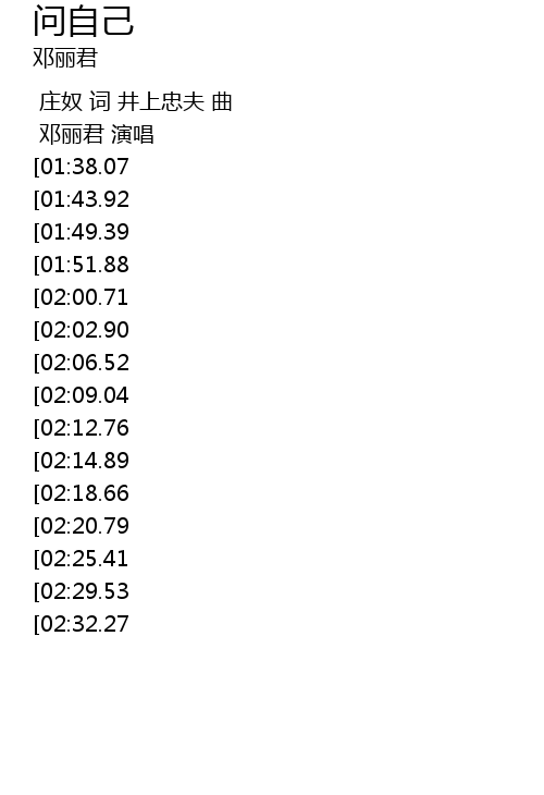 | [03:03.02][01:38.07][00:25.28] | 我时常默默地问自己 |
